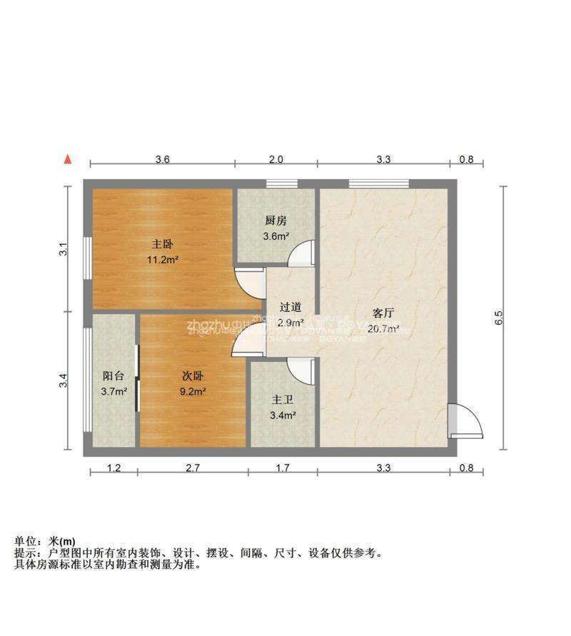 厅室2室1厅1卫1阳台