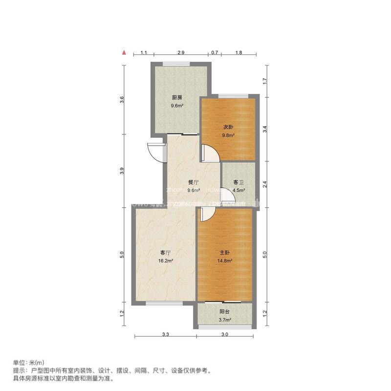 厅室2室1厅1卫1阳台
