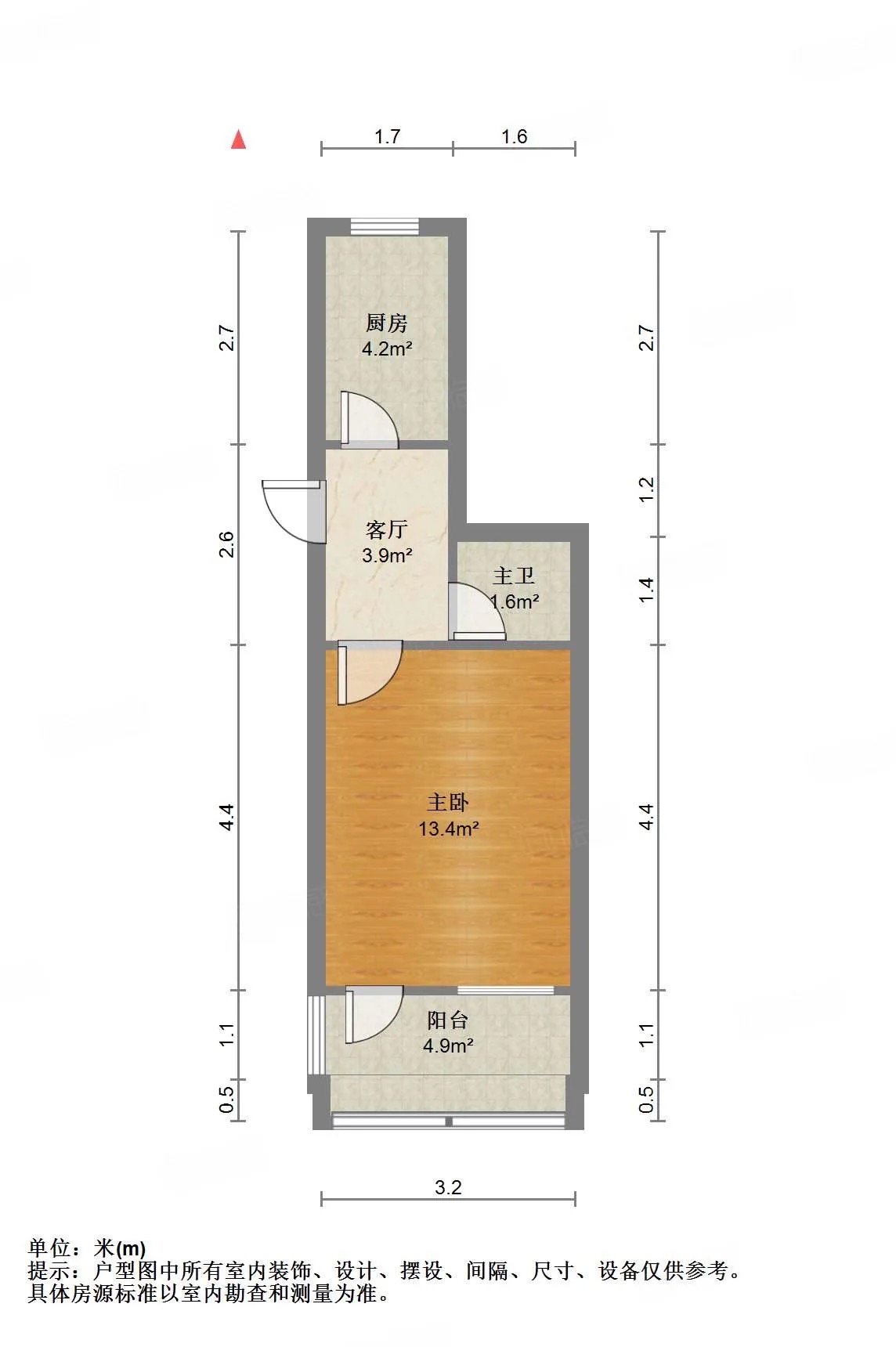 朝向南北 建筑面积33.4㎡