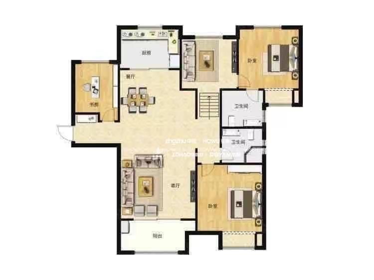 厅室3室2厅1卫1阳台