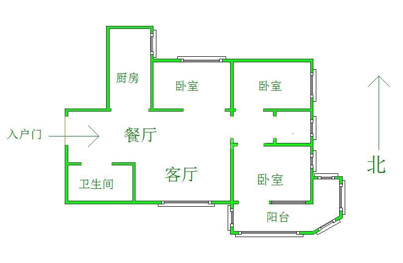 2、户型优势:3室2厅,南北卧室,客厅方正好用,单元对讲门,大院传达,安全性高!