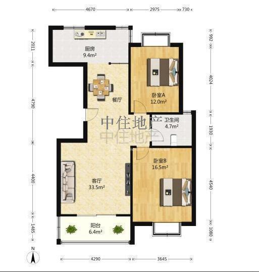 朝向南北 建筑面积110㎡
