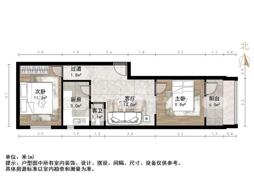 朝向南北 建筑面积70㎡