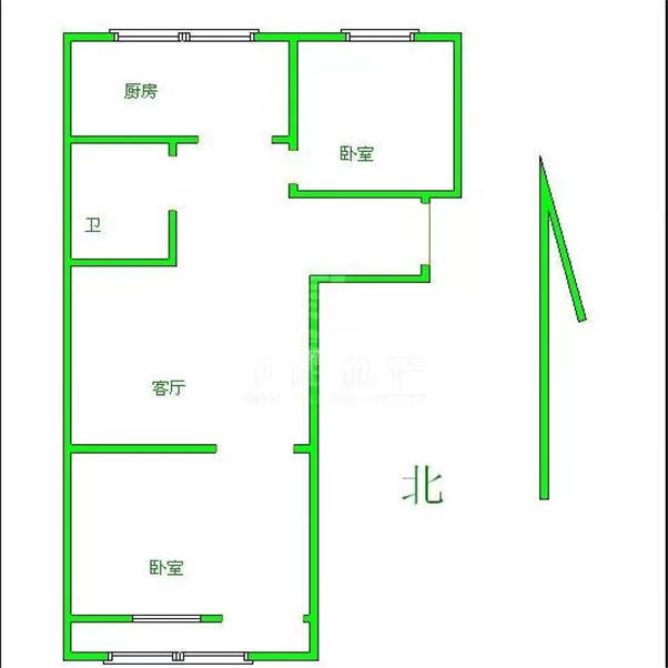 2、户型优势:2室1厅,南北卧室,客厅方正好用,单元对讲门,大院传达,安全性高!