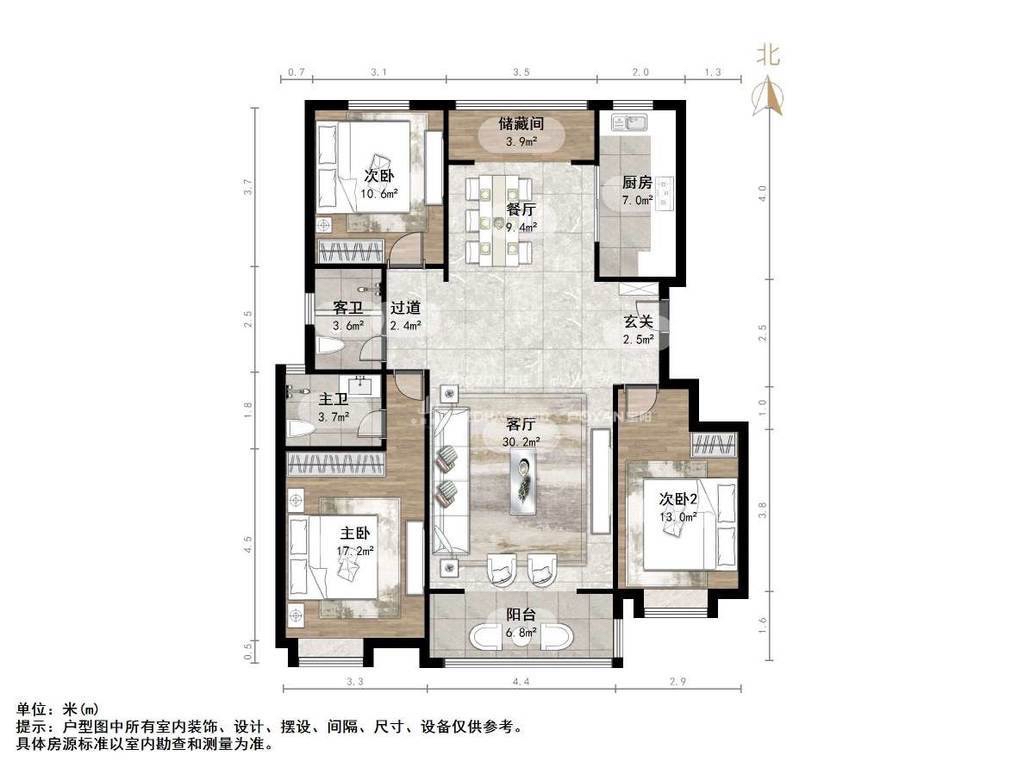 厅室3室2厅2卫1阳台