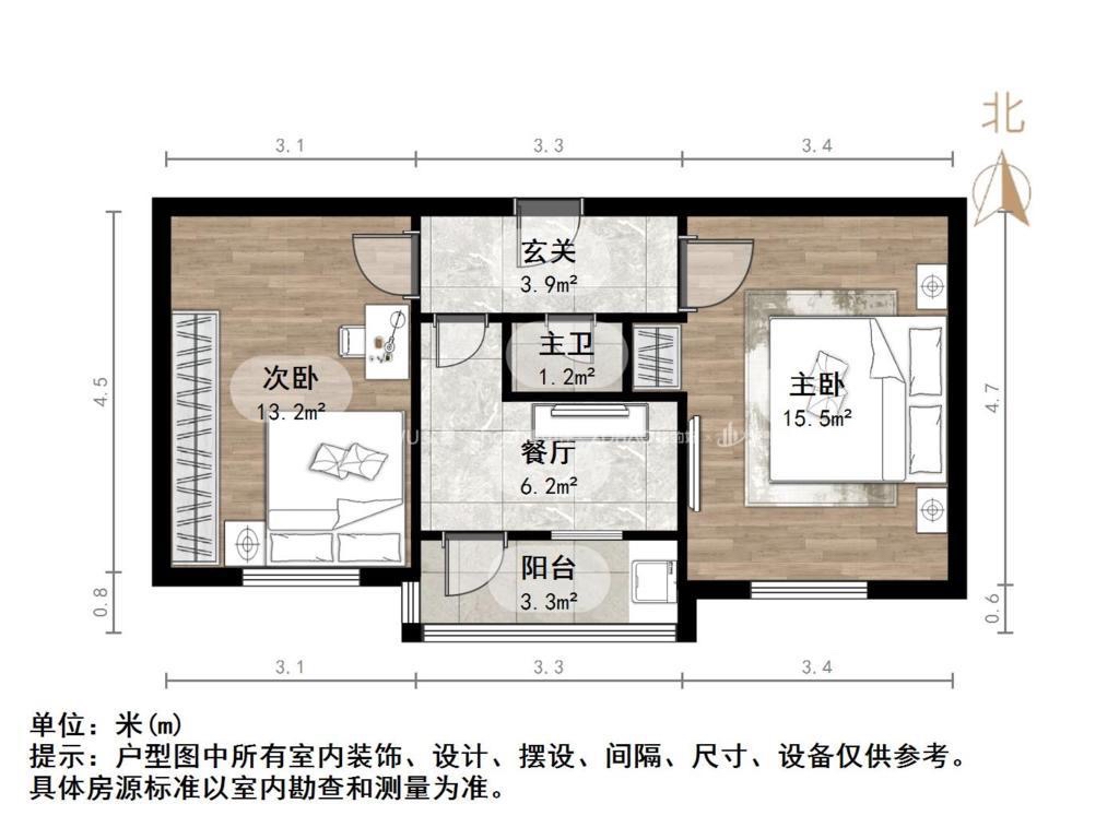 厅室2室1厅1卫1阳台