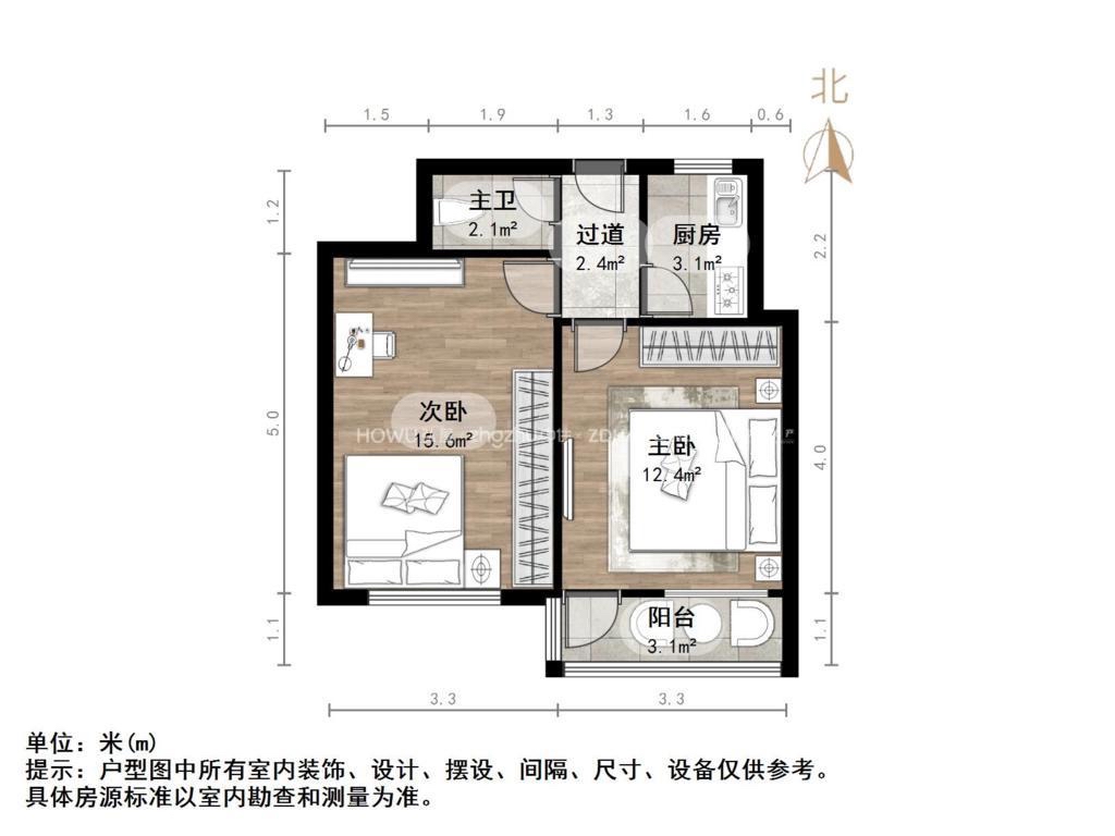 朝向南北 建筑面积55㎡
