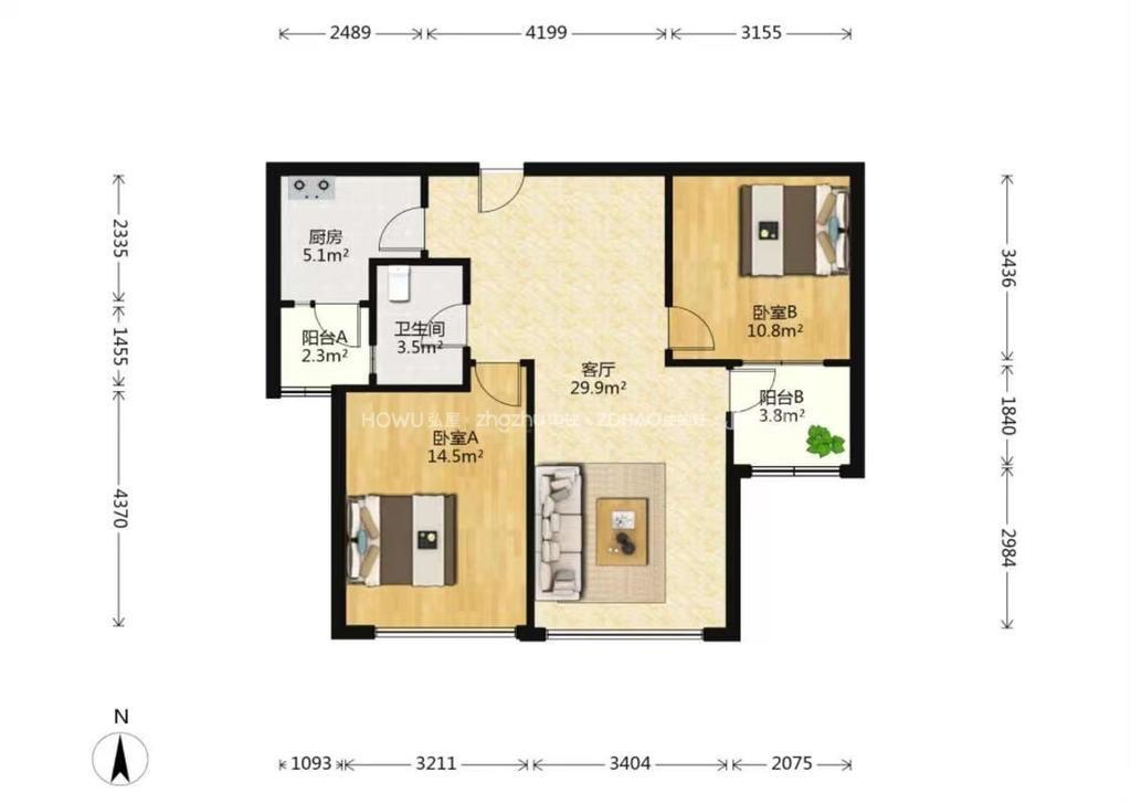 厅室2室2厅1卫1阳台
