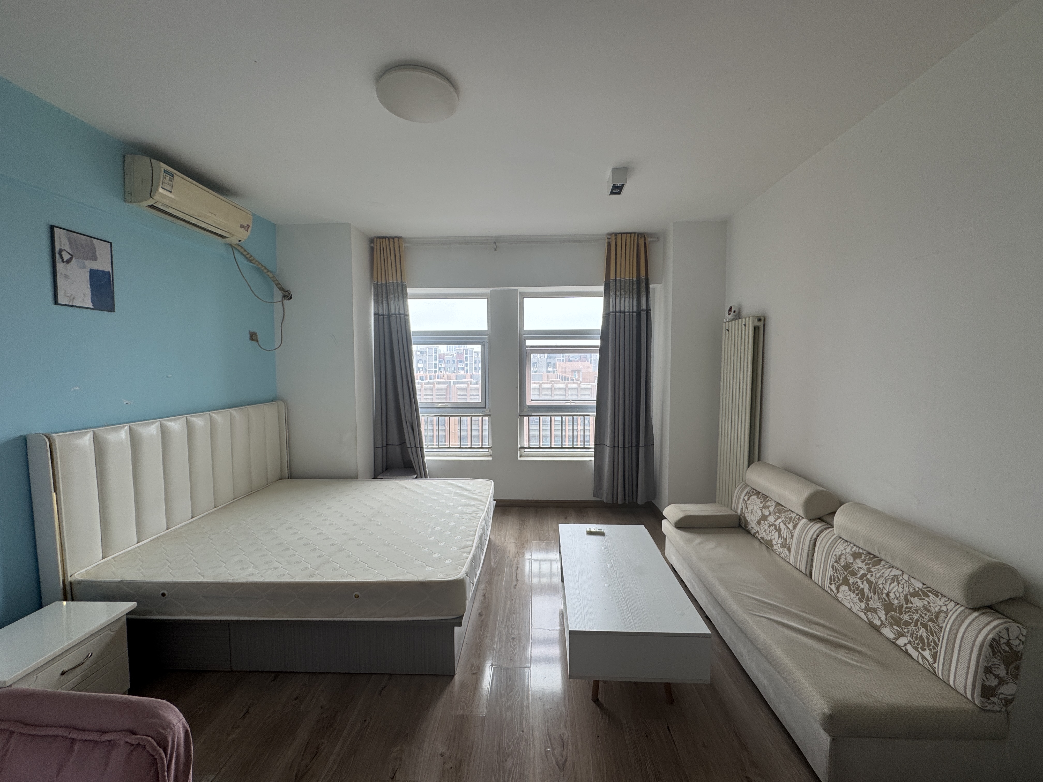 2、户型优势:1室一厅,南北卧室,客厅方正好用,单元对讲门,大院传达,安全性高!