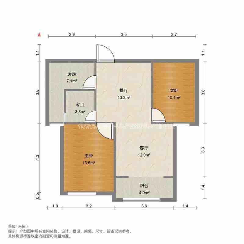 厅室2室1厅1卫1阳台