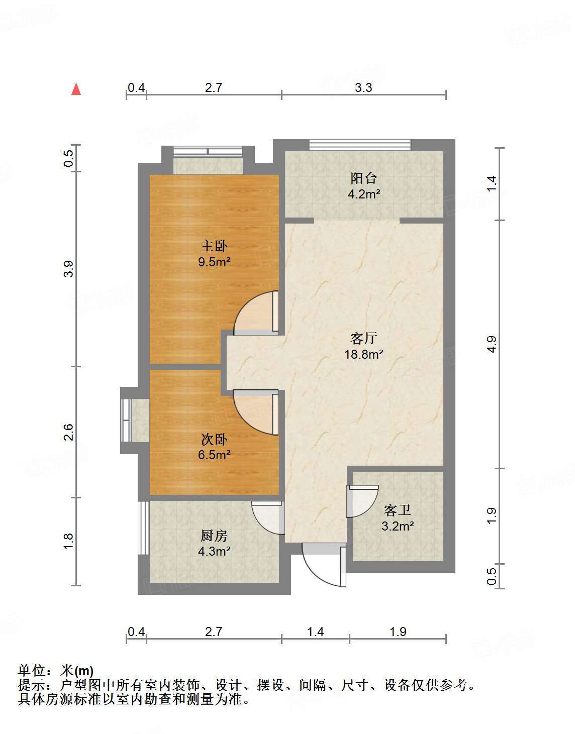 厅室2室1厅1卫1阳台