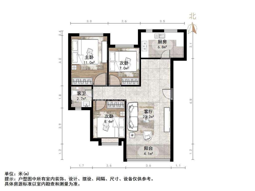 朝向南北 建筑面积92.7㎡