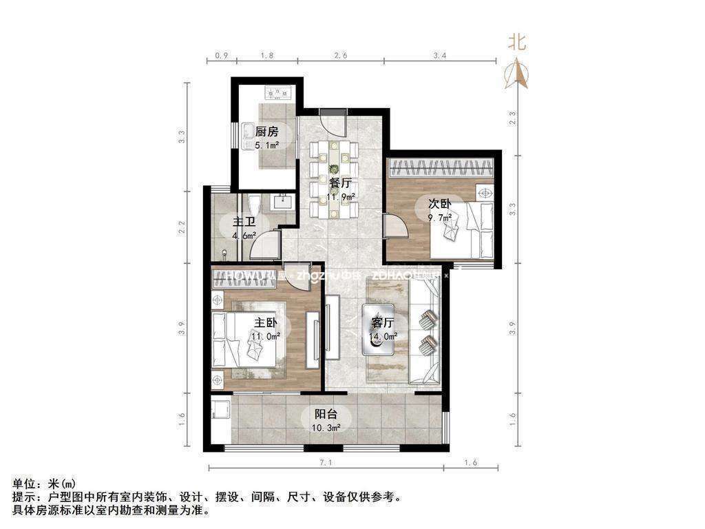 朝向南北 建筑面积87.27㎡