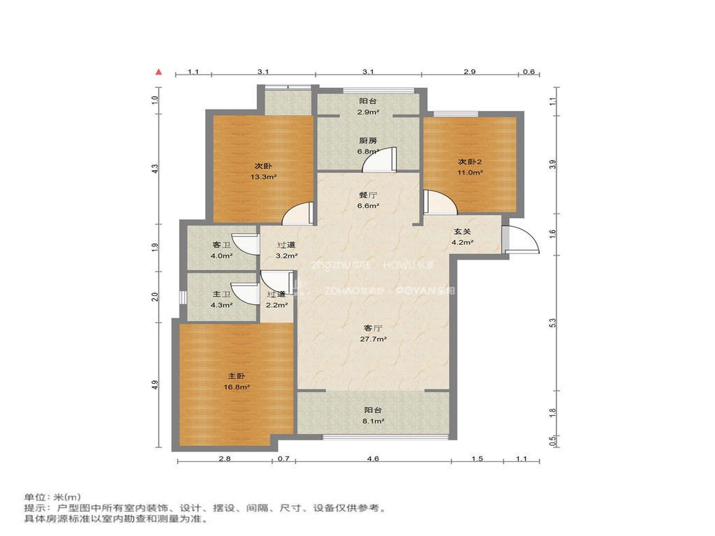 厅室3室2厅2卫2阳台