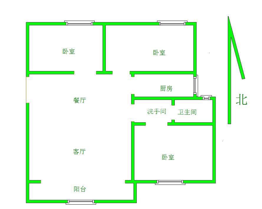 2、户型优势:3室2厅,南北卧室,客厅方正好用,单元对讲门,大院传达,安全性高!