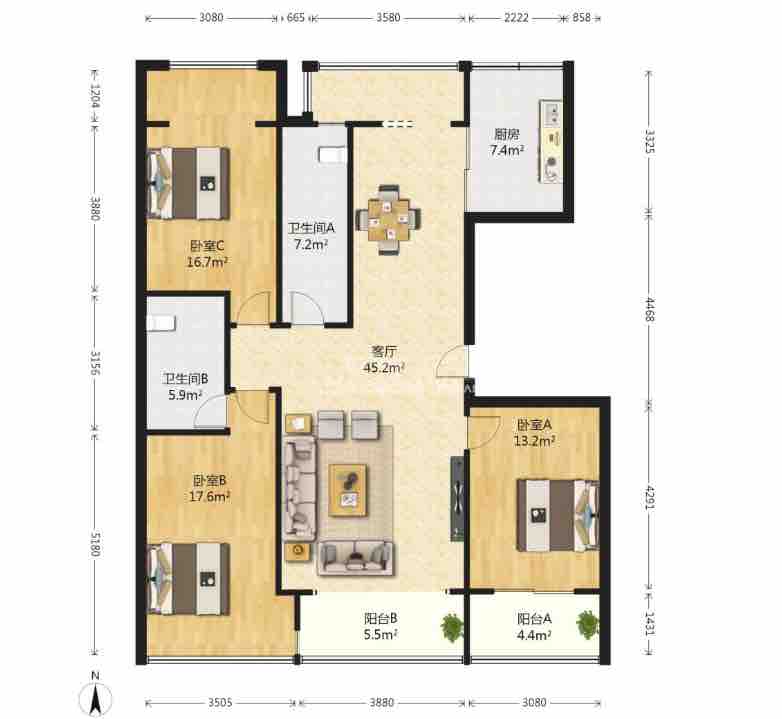 厅室3室2厅2卫2阳台