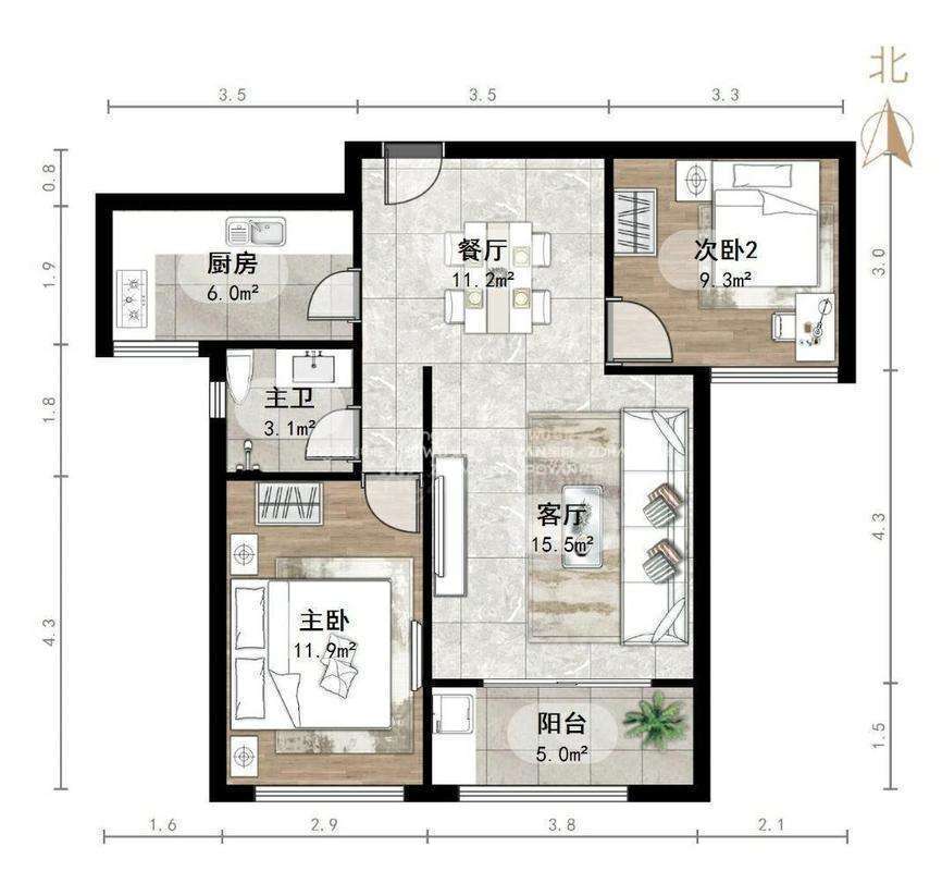【户型】两室两厅一卫,客厅方正大气好利用
