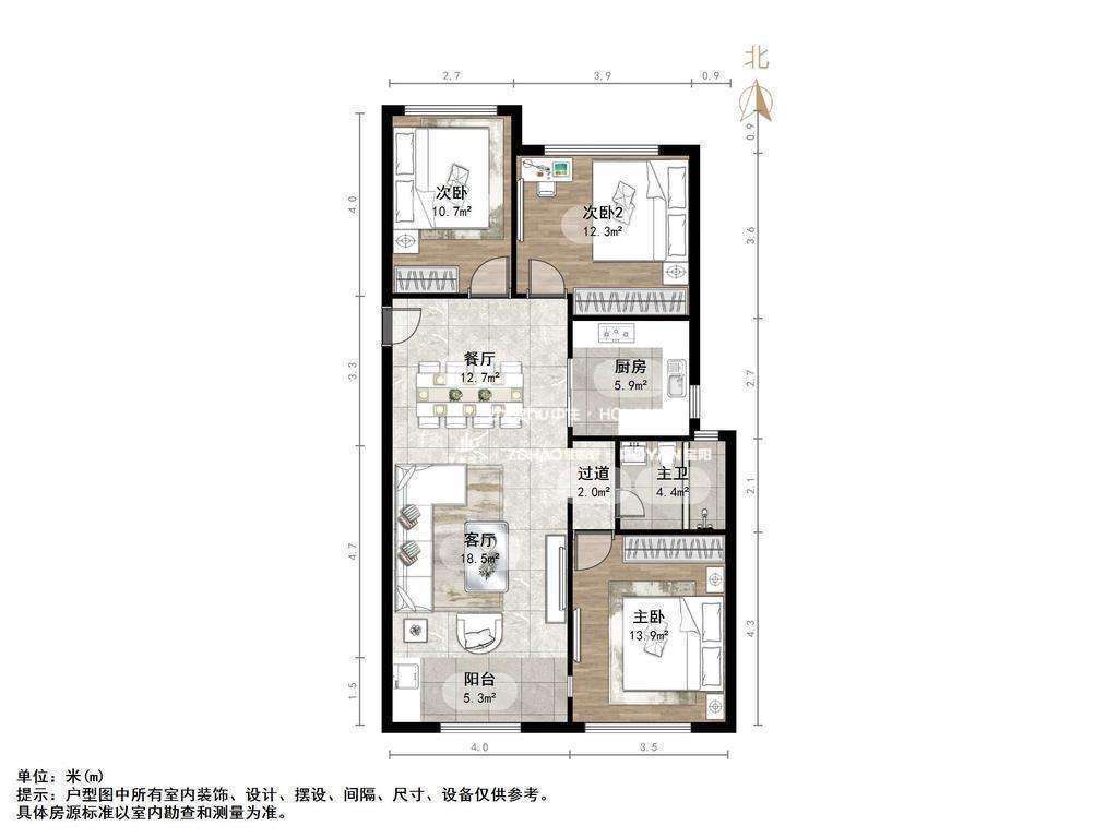 厅室3室1厅1卫1阳台