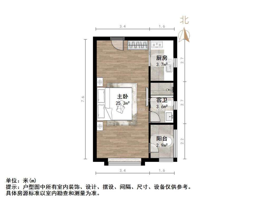厅室1室1厅1卫1阳台