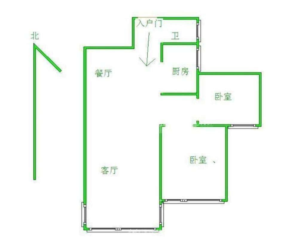 2、户型优势:2室1厅,南北卧室,客厅方正好用,单元对讲门,大院传达,安全性高!