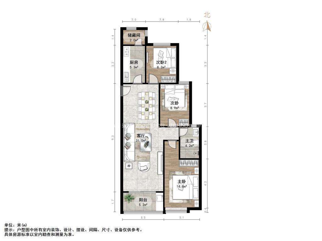 朝向南北 建筑面积107㎡