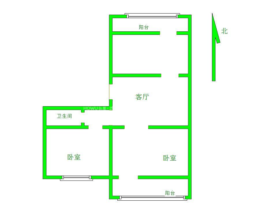 2、户型优势:2室1厅,南北卧室,客厅方正好用,单元对讲门,大院传达,安全性高!