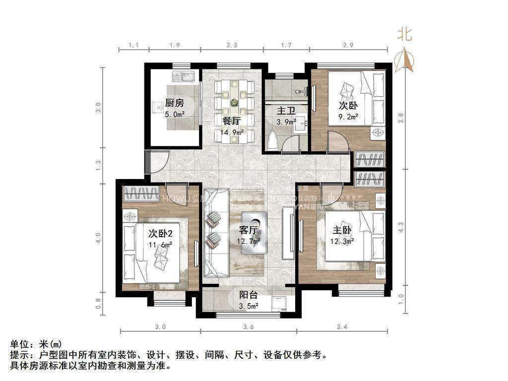 朝向南北 建筑面积117㎡