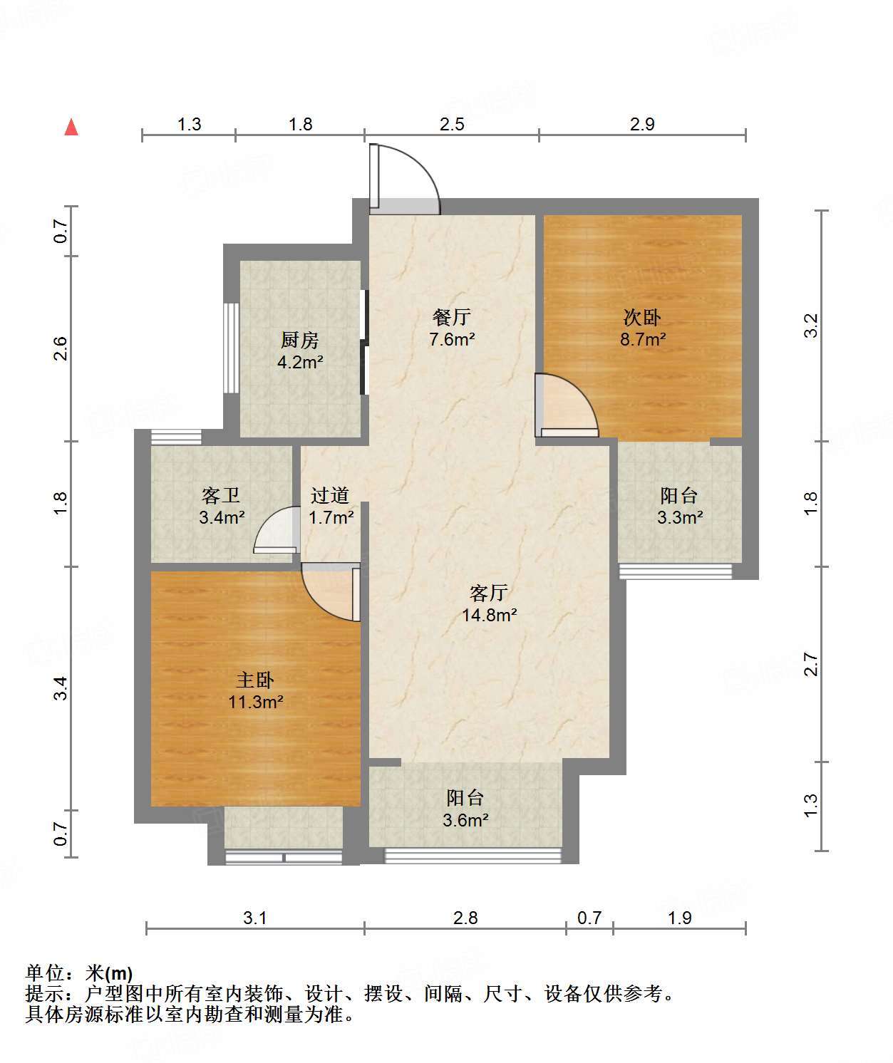 厅室2室2厅1卫1阳台