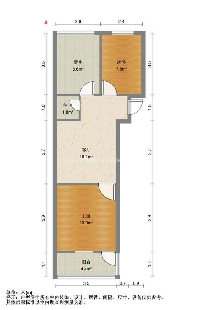 厅室2室1厅1卫2阳台