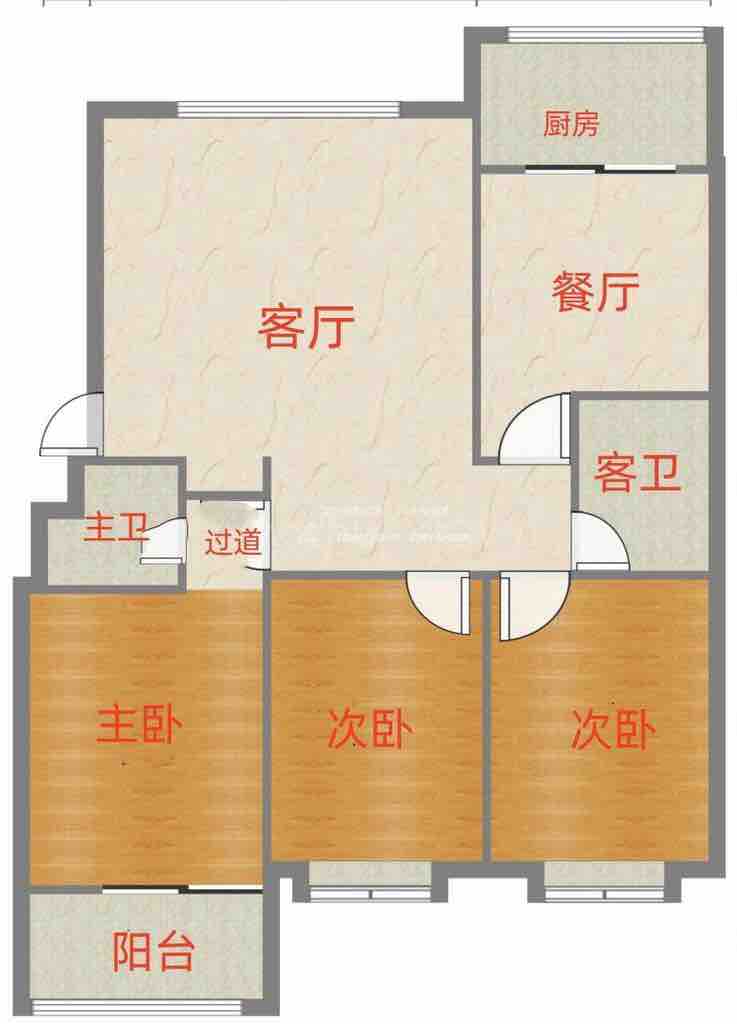 厅室3室2厅2卫1阳台