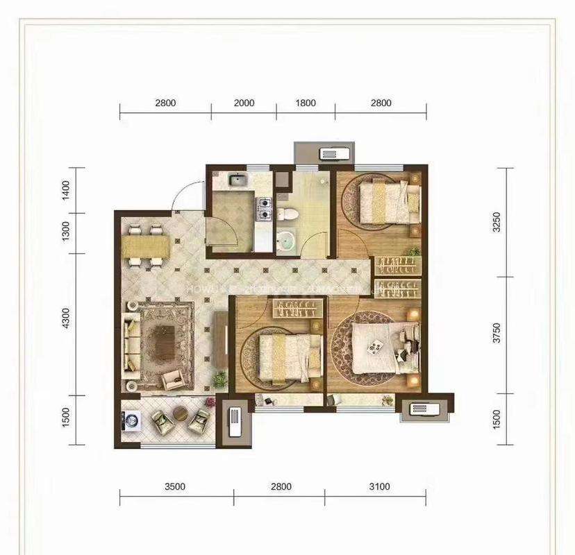 厅室3室2厅2卫1阳台