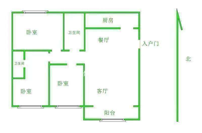 2、户型优势:3室2厅,南北卧室,客厅方正好用,单元对讲门,大院传达,安全性高!
