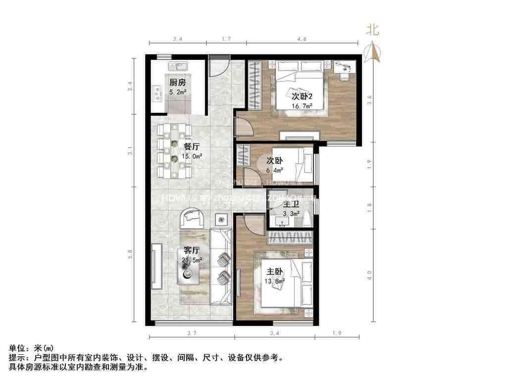 朝向南北 建筑面积106㎡