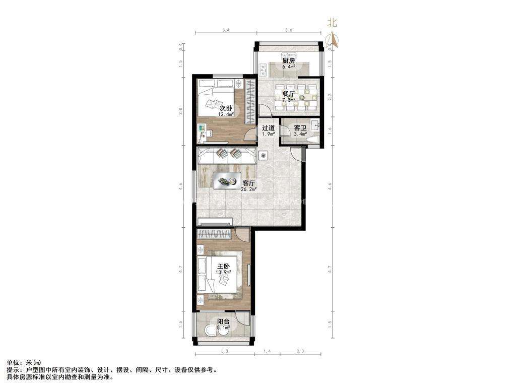 朝向南北 建筑面积92㎡