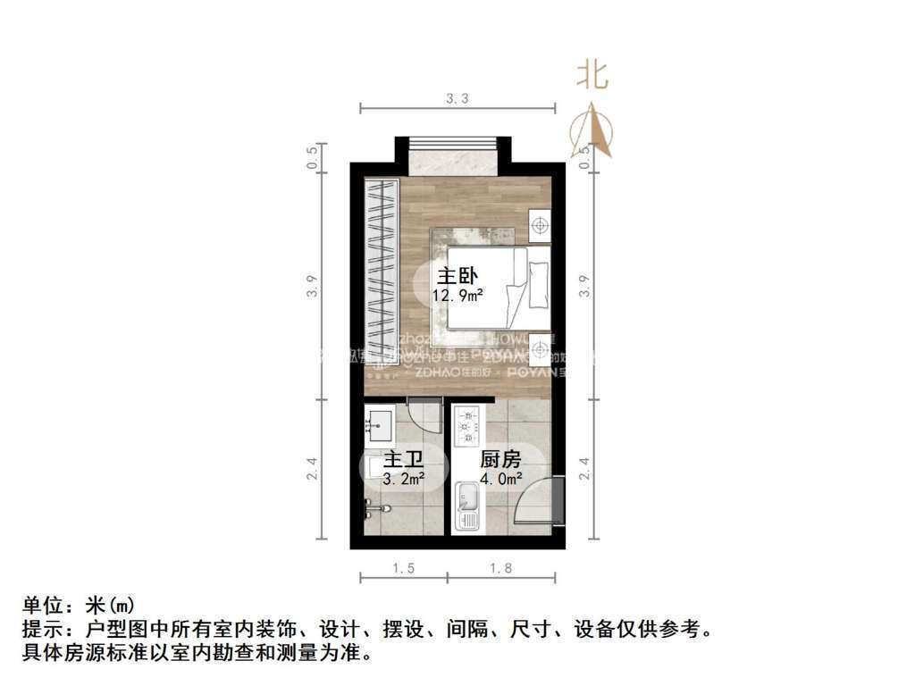 朝向南北 建筑面积23㎡