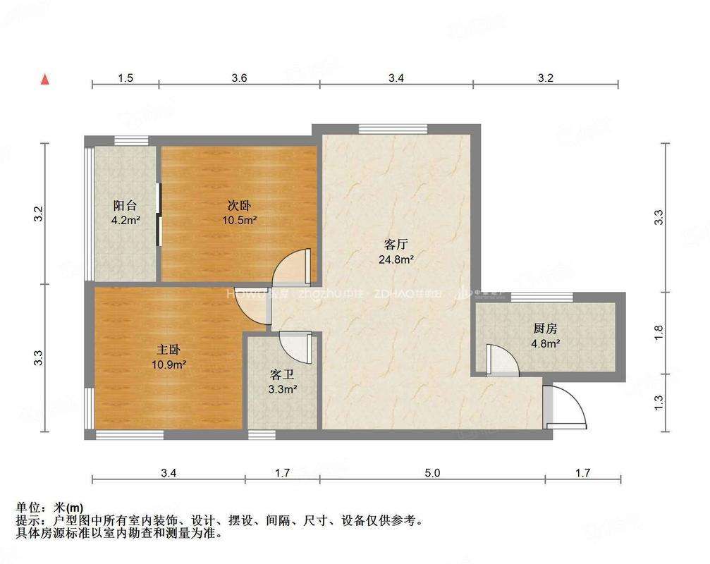 厅室2室1厅1卫1阳台