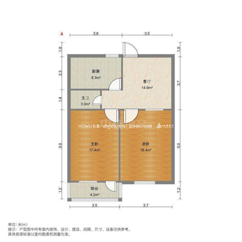 厅室2室1厅1卫1阳台