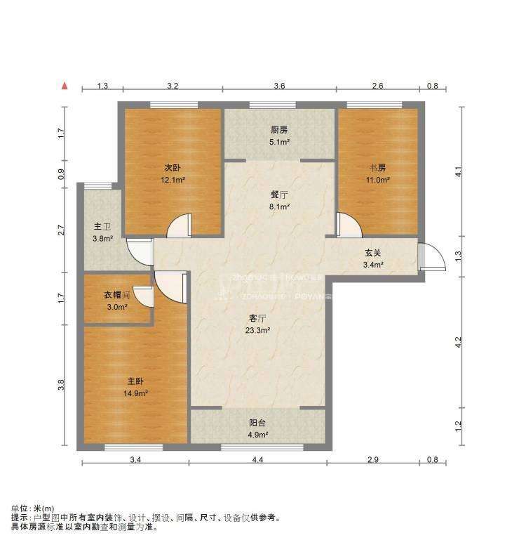 厅室3室2厅2卫1阳台
