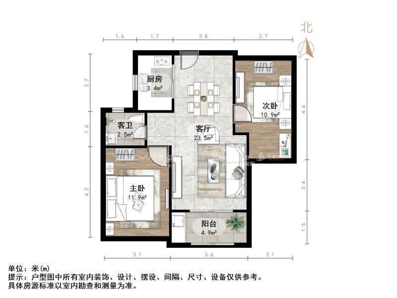 2、户型优势:南北卧室,客厅方正好用,单元对讲门,大院传达,安全性高!