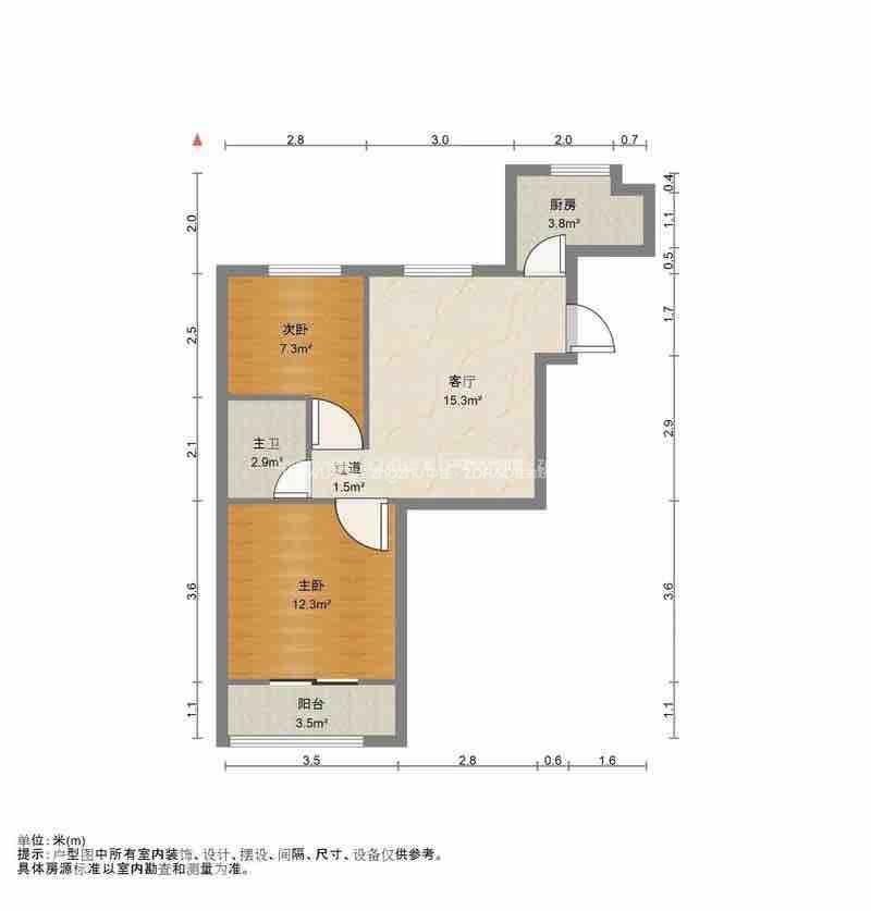 厅室2室1厅1卫1阳台