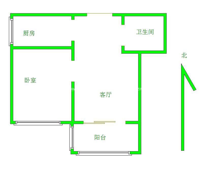 厅室1室1厅1卫1阳台