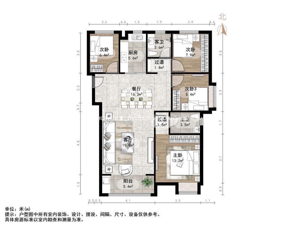 厅室4室2厅2卫1阳台