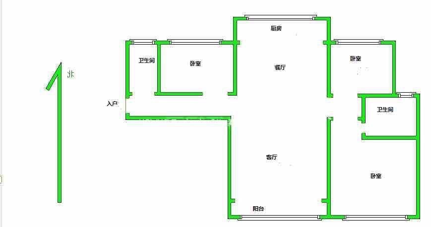 2、户型优势:3室2厅,南北卧室,客厅方正好用,单元对讲门,大院传达,安全性高!