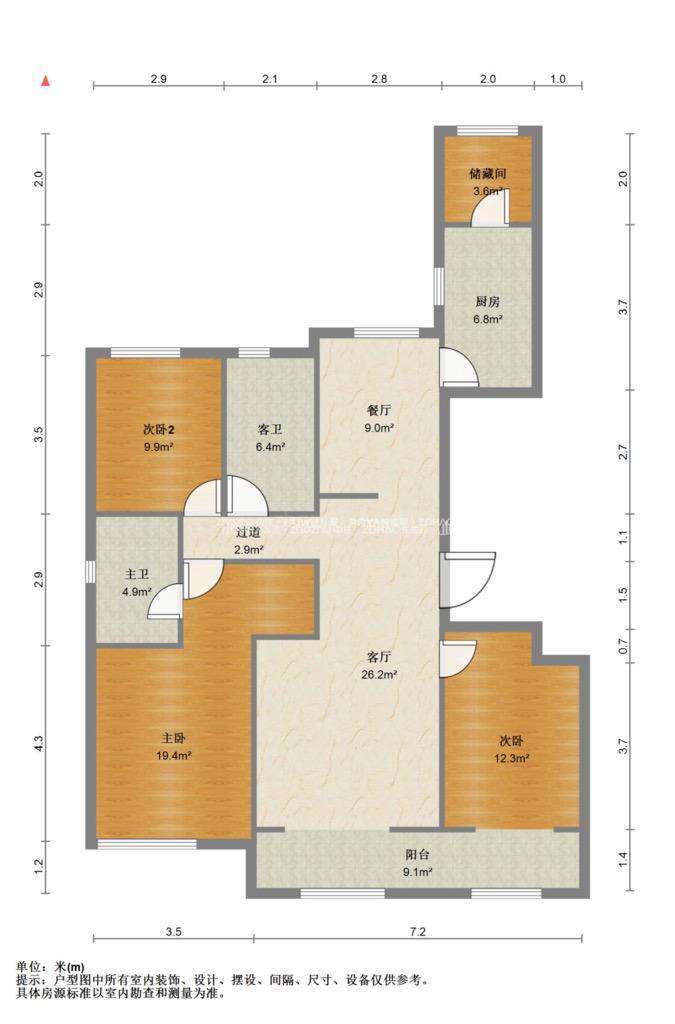 厅室3室2厅1卫0阳台