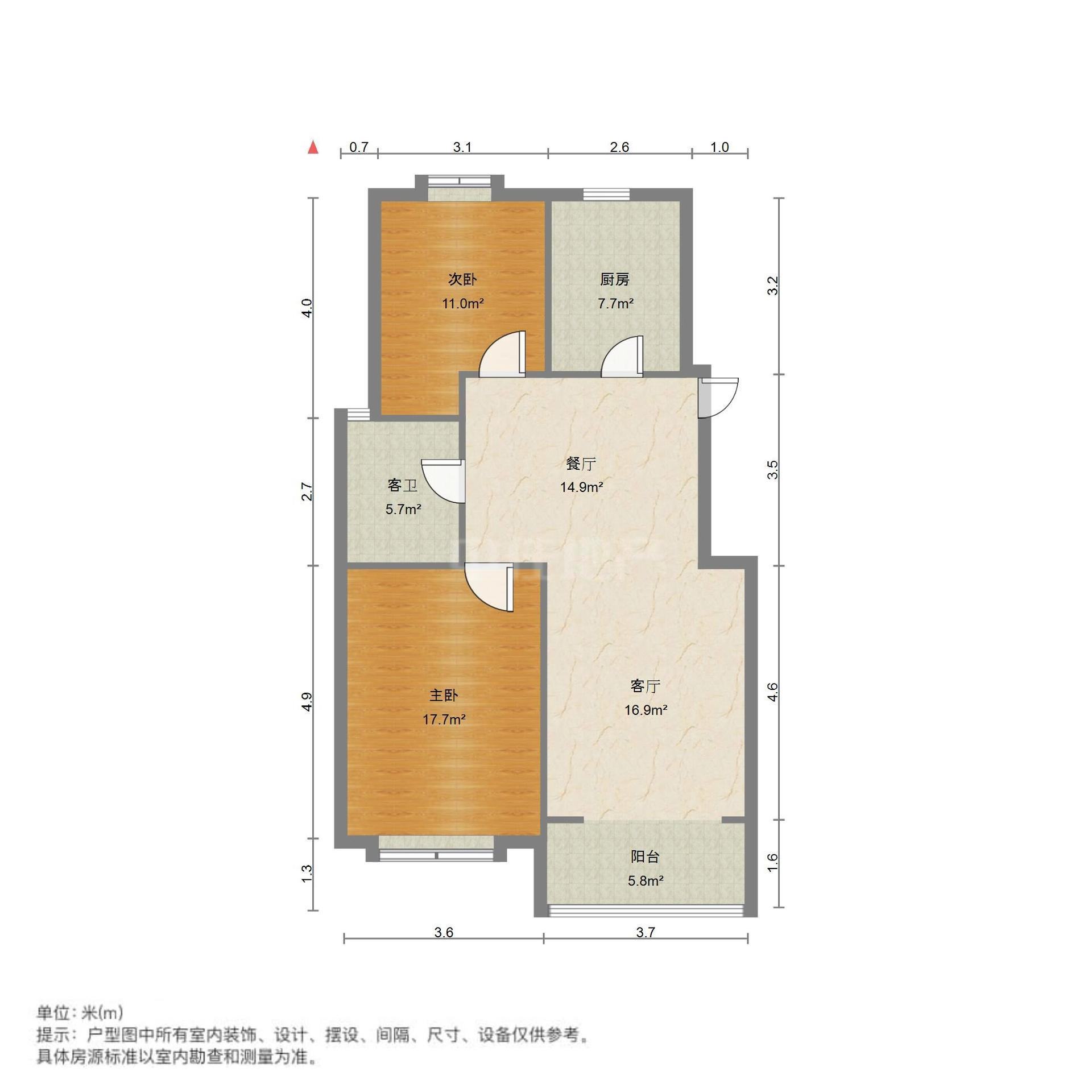 2、户型优势:两室两厅,南北卧室,客厅方正好用,单元对讲门,大院传达,安全性高!