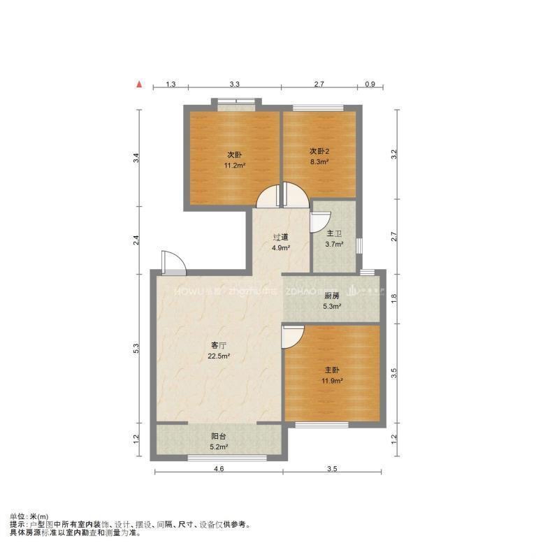 厅室3室2厅1卫1阳台