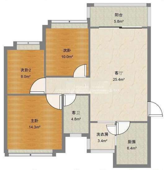 厅室3室2厅1卫1阳台