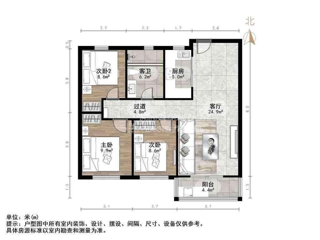朝向南北 建筑面积100.53㎡