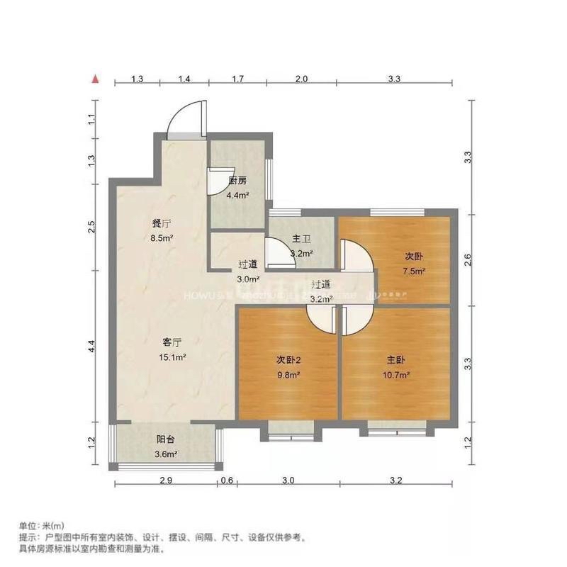 厅室3室2厅1卫1阳台