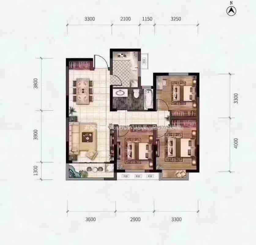 厅室3室2厅1卫1阳台